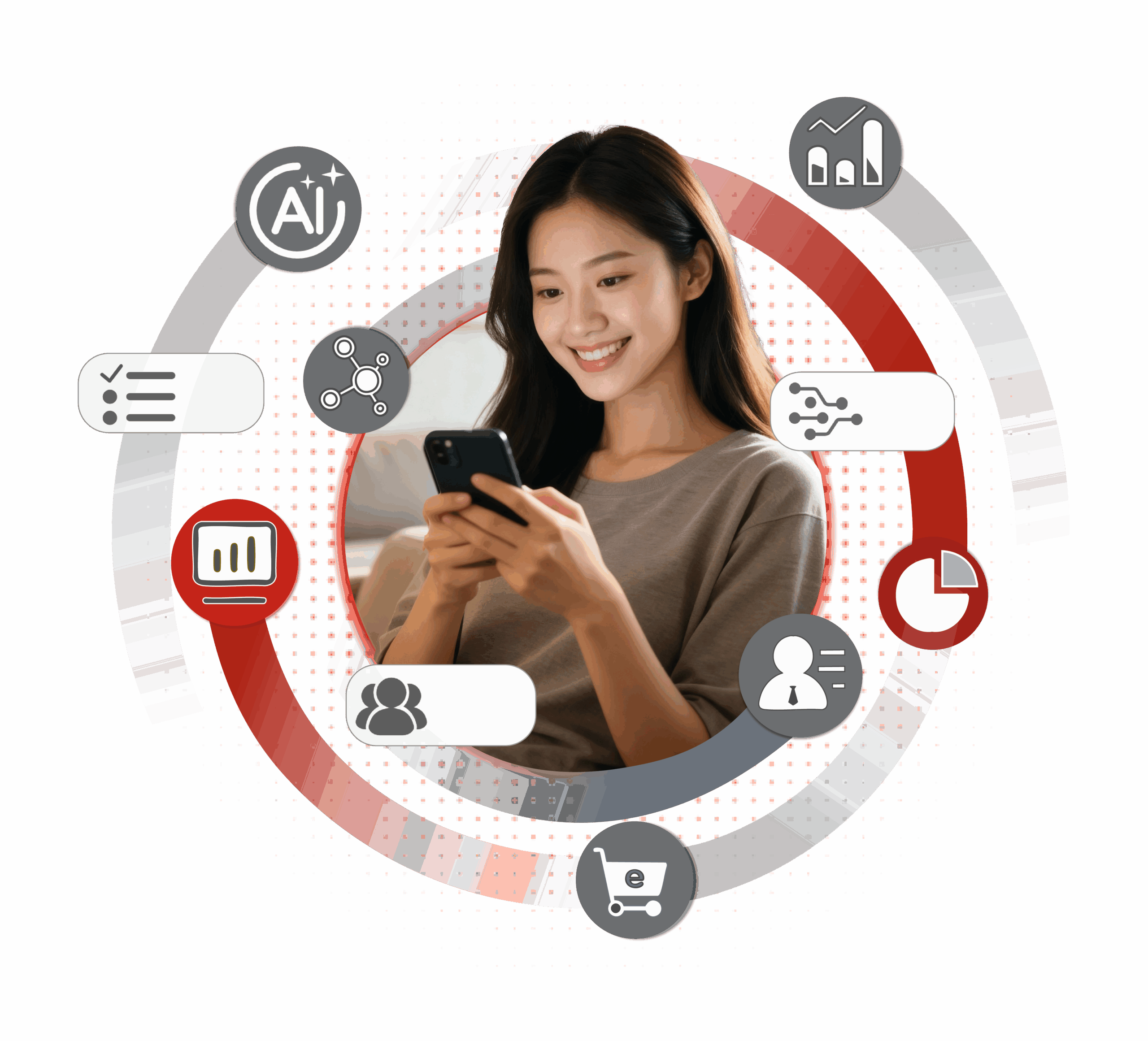 DataCanva unifies CRM, eCommerce, POS, and file data, automates data pipelines, enriches insights with AI, and activates them through dashboards and omni‑channel journeys.